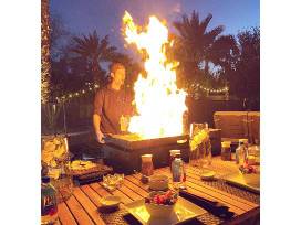 Have the best dinner at home with an Ultimate Hibachi Experience for you and your guests (Total of 6) - Individual choice of steak, chicken or vegetarian options with salad and appetizer included. Also includes fully set tables, chairs and a chef show. Buy this fire show for an amazing time!