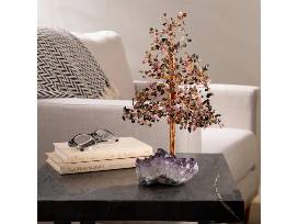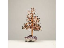 Decorate your home with a beautiful Tourmaline Tree of Life on Amethyst Geode Base with 728 Natural Gemstones from Kalifano. This piece stands about 10 inches tall making it the perfect size for your shelf, dresser, or desk.