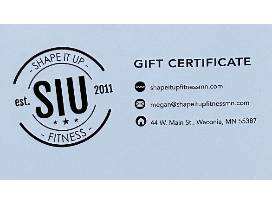 This package includes a $100 gift certificate to Shape It Up Fitness in downtown Waconia. Also included is a Shape It Up towel, as well as a Lulumelon belt bag which makes for a great purse on the go!