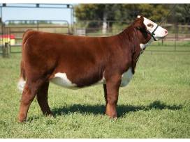 Mariah has written her page in the Hereford history books. She was crowned Grand Champion Horned Hereford Female in Denver as a heifer calf and that isn't her most impressive feat. She has exploded since coming into production. She has placed females in the donor pens of some of the most noted herds in the industry; Hoffman Ranch, Churchill Cattle Co, Frederickson Ranch, Iron Lake Ranch, 6 Mile Creek, Williams Hilltop Herefords among others. She has AI sires in our battery that are making a big impact around the country. She stamps every calf with power, stoutness and elite phenotype. Her females are flawless uddered, feminine made and ultra powerful. At the ripe age of 13, she is still as sound and youthful as when we bought her 10 years ago. She is truly a once in a generation type female.
