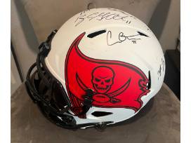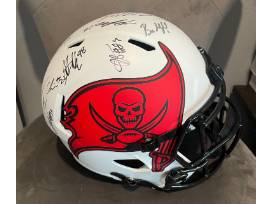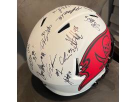 Lunar White Bucs replica FULL SIZE helmet. Includes signatures from the following players: Baker Mayfield, Cam Brate, Gio Bernard, Carlton Davis, Jamel Dean, Kyle Trask, Rachaad White, Cade Otton, David Moore, Breshad Perriman, Christian Izien, Blaine Gabbert, Anthony Nelson, Trey Palmer