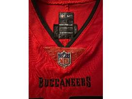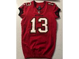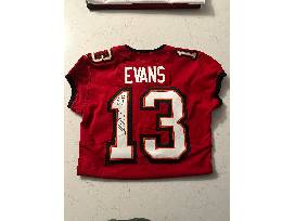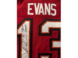 Official NFL-issued game jersey from the Buccaneers' .2020 Super Bowl Championship Season, Autographed and inscribed by Mike Evans. This is a rare, official game jersey that was available on the sideline in the event of emergency, should Evans' first jersey become damaged.