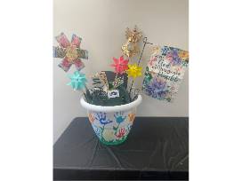 "Watch Us Grow" Gardening Pot includes an adorable flower pot with all of Mrs. Dodd's student's handprints filled with everything you need to plant this spring! The pot consists of garden flags and flag pole, garden tools, knee pad and gloves, hose and attachment, watering can, flower seeds, potting soil, a beautiful solar angel yard ornament, along with a $50 gift card to Country Arbors Nursery and a $50 gift card to Lowe's.