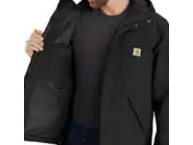 Work doesn't stop for thunderstorms or rain showers. This men's jacket is made to stand up to the weather so you can get the job done. Waterproof and breathable thanks to Storm Defender, it keeps the rain out but lets sweat escape. A detachable hood and an adjustable droptail hem provide full coverage. The loose fit gives you plenty of room for layering.