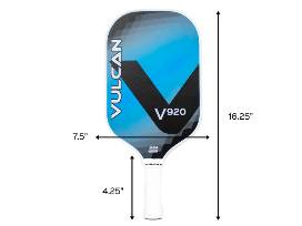 The Vulcan V920 is designed for players who prefer a large, forgiving hitting surface with a standard 13mm ZEP9 core for extra power. The modified elongated shape allows more reach, with a generous sweet spot, and a shorter 4-1/4" handle for those who play a quick-hands style game. Features Quatro-Carbon carbon fiber face, 4 1/4" handle length, and 4 1/8" grip circumference. Weight 7.8 oz.