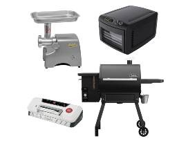 Grind everything from fresh beef or pork to your favorite wild game quickly and easily at home with the reliable power of the Cabela's Deluxe Meat Grinder. Enclosed in a solid die-cast metal housing, our Deluxe Meat Grinder features a quiet yet powerful 600W DC motor that can grind 4 lbs. of meat/minute. Easy-to-use toggle switch control allows for forward and reverse functions to prevent clogging. Sausage ring and 3 sausage-stuffing funnels make it easy to crank out homemade sausages and snack sticks. Grinder comes with: 12.75"Lx8.76"Wx2"D meat tray, stainless steel knife, 2 stainless steel cutting plates (4.5mm and 8mm), and a meat stomper.