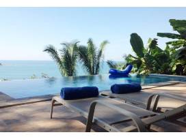 Escape to a tropical paradise at this beautiful villa. Nestled in a small gated community on a lush hillside overlooking the South Pacific, this home has a unique panoramic view of the jungle and ocean. Enjoy nature's masterpiece from the pool deck during the day with tropical birds, sloths, iguanas and the occasional troop of monkeys, and at night with a spectacular sunsets and star studded skies. There are lots of great activities to do nearby but save some time to enjoy a sunset. Pura Vida!