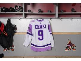 This jersey was issued for the Coyotes vs. Avalanche game on November 30th, 2023 and autographed by #9 Clayton Keller.