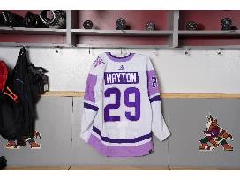 This jersey was issued for the Coyotes vs. Avalanche game on November 30th, 2023 and autographed by #29 Barrett Hayton.