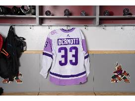 This jersey was issued for the Coyotes vs. Avalanche game on November 30th, 2023 and autographed by #33 Travis Dermott.