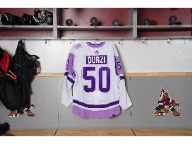 This jersey was issued for the Coyotes vs. Avalanche game on November 30th, 2023 and autographed by #50 Sean Durzi.