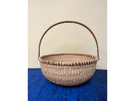 Made by Deacon Don Battiston, a Nantucket basket maker now living in Mystic. Deacon Don is an ordained Catholic Deacon who was assigned to Saint Mary Our Lady of the Isle on Nantucket for 30 years where he learned the art of basket making. He was one of the founders of the Nantucket Basket Museum.
