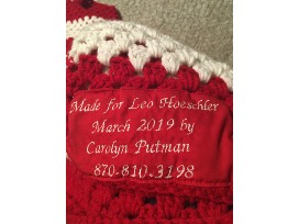This afghan is approx 72" x 48" This was made expressly for Leo Hoelsher bu Carolyn Putman.