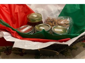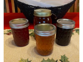 Treat yourself to this tasty basket of goodies that includes a jar of Honey, sugar pecans & a jar each of apple, strawberry & blackberry jelly