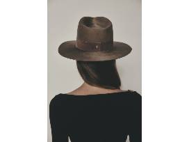 This stiffened wool fedora was adapted from a vintage men's block and finished with a tan suede leather band. It's a hat designed to make a statement and one of their best selling wool styles.