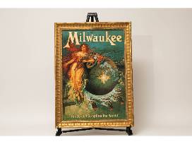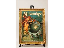 Vintage style Milwaukee print framed in an ornate, water gilded gold leaf frame. Archivally mounted and finished with UV protected clear glass. Overall size including frame: 25" x 17.5"