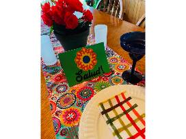 Bring some color to your kitchen with these beautifully handmade napkins and table runner by Vicki Bonesho. This package includes 8 napkins and a 72 inch table runner.