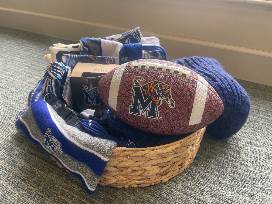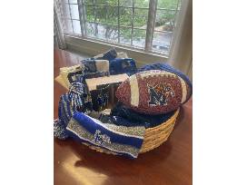 This is the ultimate gift for the University of Memphis Tiger fan! The circular woven basket is stocked full of UofM branded items and plenty of Tiger blue apparel for every Tigers outing. The items in the basket include a logo football, button, lanyard, 2 Pairs of tube socks, sparkly headband, 2 beanies, a 2-pack glass set, knitted throw, 2 koozies, clear purse for games, sweat towel, and 3 t-shirts. Donated by Mary Washington '04 P'30.