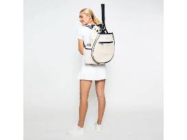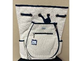 On the interior, there are two mesh pockets for water and tennis balls and an interior zip to keep valuables stored away during your match. Other features include: adjustable shoulder straps with two color webbing; drawstring closure; exterior pocket fits two racquets; exterior front zip pocket; interior zip pocket; two interior slip pockets; two interior water bottle pockets; nylon liner. Dimensions: 16"L x 6"W x 16"H.