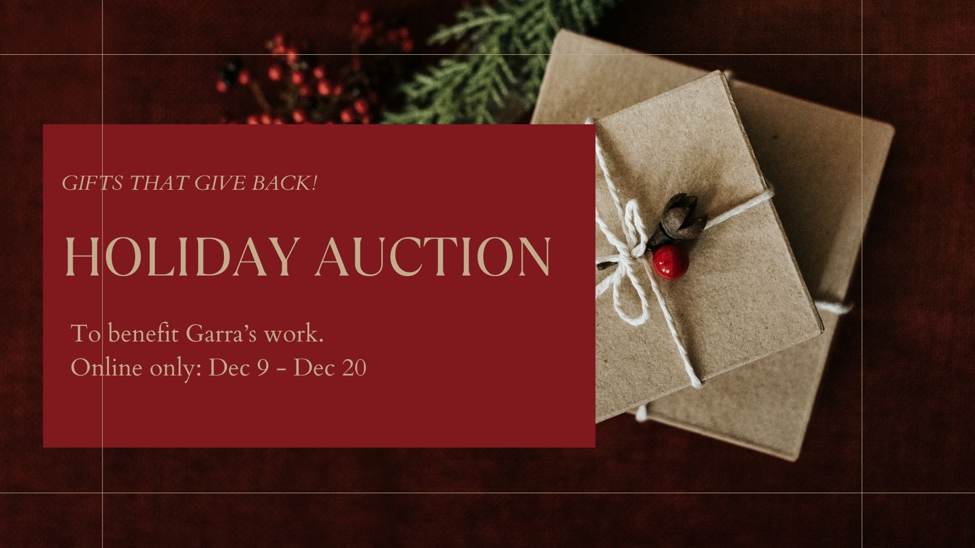 There are many ways to support us! You can bid on an auction item, buy the item outright, share the auction with your networks, or make a tax-deductible donation directly to us. All bids can be made online from December 9 till December 20.