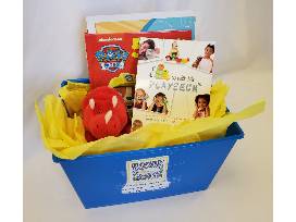In addition to the Birthday Party, enjoy a decorative basket that contains a brand-new book and toy or activity from the Playseum Gift Shop.