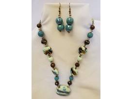 One-Of-A-Kind Kazuri Bead Necklace and Matching Earrings In Beautiful Soft Blue and Brown Tones