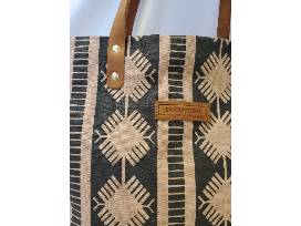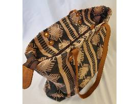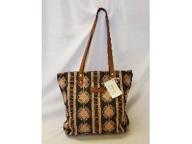 Made and purchased in Kenya. This leather handle bag is well made and versatile. Earth tones with striking geometric print.