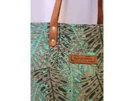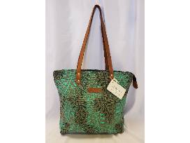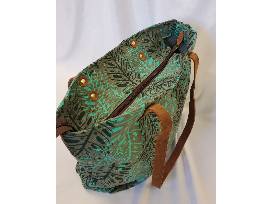This leather handle bag is well made and versatile. Brown and green colors and motif.