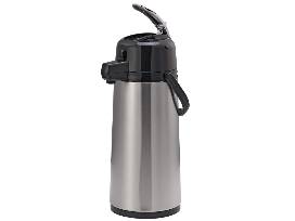Satin Finish Stainless Steel Air Pot (1.9 Liter Capacity) With Level Pump Lid. Insulated Beverage Dispenser, Thermal Coffee Carafe. Glass vacuum insulated. Six to eight hour heat retention. Easily sits on countertops or travels to work and picnics.