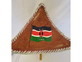 This 18 Inch Hand Stitched and Hand Carved Kenyan Stool is Ideal for Home Decor, Children, or a Foot Stool. Leather seat portraying the national Kenya flag.