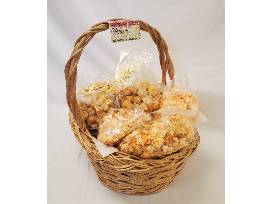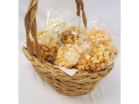 The basket includes these varieties: Caramel popcorn, caramel puffed corn, plain-white popcorn, etc.