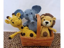 Crocheted African Elephant, Lion and Giraffe. Hand made with love!
