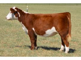 Hereford heifer with an exotic look. Freak neck⦠and from there back is designed so well. Soft middled, big hipped and sound. Lucky number 7 has it all!