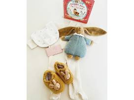 This basket from the little being is simply precious. It is full of gender-neutral gifts that would delight any new parent. It includes: