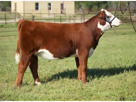 Mariah has written her page in the Hereford history books. She was crowned Grand Champion Horned Hereford Female in Denver as a heifer calf and that isn't her most impressive feat. She has exploded since coming into production. She has placed females in the donor pens of some of the most noted herds in the industry; Hoffman Ranch, Churchill Cattle Co, Frederickson Ranch, Iron Lake Ranch, 6 Mile Creek, Williams Hilltop Herefords among others. She has AI sires in our battery that are making a big impact around the country. She stamps every calf with power, stoutness and elite phenotype. Her females are flawless uddered, feminine made and ultra powerful. At the ripe age of 13, she is still as sound and youthful as when we bought her 10 years ago. She is truly a once in a generation type female.