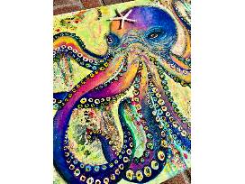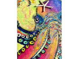 iridescent glitter, spray paint, pastels, acrylic and oil paints on stretched canvas, she's ready