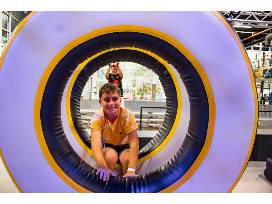 Explore our amazing obstacle courses (NBC's American Ninja Warrior approved!), twist'n'twirl, jump, and flip on our gigantic trampolines, make it all the way to the top (we dare you!) at the rock climbing, and move it fast at the parkour zone!