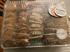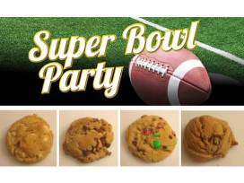 Super Bowl Basket contains a 4 dozen variety assortment of chocolate chip cookies. Donated by Doug Gutjahr- Crumbles- A Bake Shop