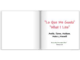 Description: In this class book, Avielle, James, Madison, Mateo and Max, express their thoughts and feelings through beautiful drawings and colors. Games, food and colors are some of the favorite things that children want to share in this lovely "What I Like" book.