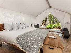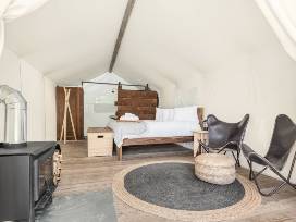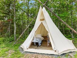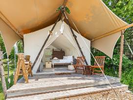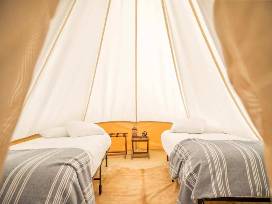 - Luxury glamping tent with an adjacent kids' sleeping tent