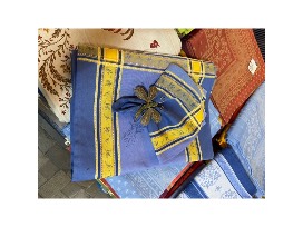 Be transported to the south of France with this blue and yellow jacquard tablecloth with six (6) matching napkins imported directly from France!