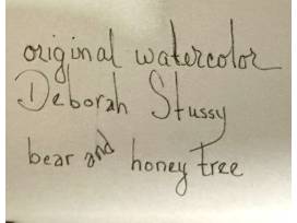 Original Watercolor Painting of a Bear and a Honey Tree.