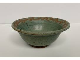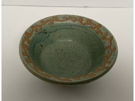 This Light Green stoneware bowl features Brown vines along the top rim by ceramic artist Amy Lange. It is food, dishwasher and microwave safe.