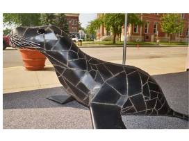 Bid on the opportunity to display a genuine Dale Lewis "Sparky the Sea Lion" sculpture in your front of your business or in your yard for one year! This iconic Mixed Metal sculpture called "Sparky the Sea Lion" will certainly be an eye-catching addition to your business or garden. Beautifully handcrafted by local sculpture Dale Lewis, it features a unique recycled computer storage panel construction and can be displayed in your location for one year. Many nearby communities have leased sculptures for $1,000 per year from Dale to display as public art. This is a great way to promote your business and support the Arts community! Dale will deliver the piece to your location.