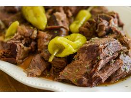 Main course: Choice of Salmon Croquettes OR Smothered Chicken OR Pork Chops OR Mississippi Roast; Macaroni & Cheese OR Candy Yams; Collard greens and Cornbread.