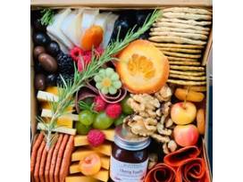Enjoy a delicious medium charcuterie box with your family and friends from the famous Olive Bleu.