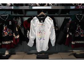 This jersey was issued for the Coyotes vs. Kings game on October 27th, 2023 and autographed by #67 Lawson Crouse.