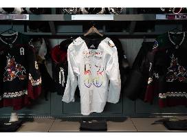 This jersey was issued for the Coyotes vs. Kings game on October 27th, 2023 and autographed by #53 Michael Carcone.