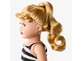 Celebrate an icon with this stunning collector doll, inspired by the Barbie doll that started it all in 1959: No. 1 Barbie. Glimmering with 455 Swarovski crystals to recreate her iconic black-and-white swimsuit, this limited-edition* doll is part of the American Girl Collector Series, available at Mattel Creations and AmericanGirl.com. Our tribute to the "Original Teenage Fashion Model" also includes a mini replica Barbie magazine with pages designed for this release.