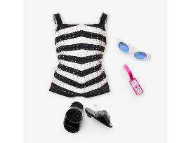 Her black-and-white striped bathing suit features 455 black and clear Swarovski crystals - the most on an American Girl Collector doll to date.